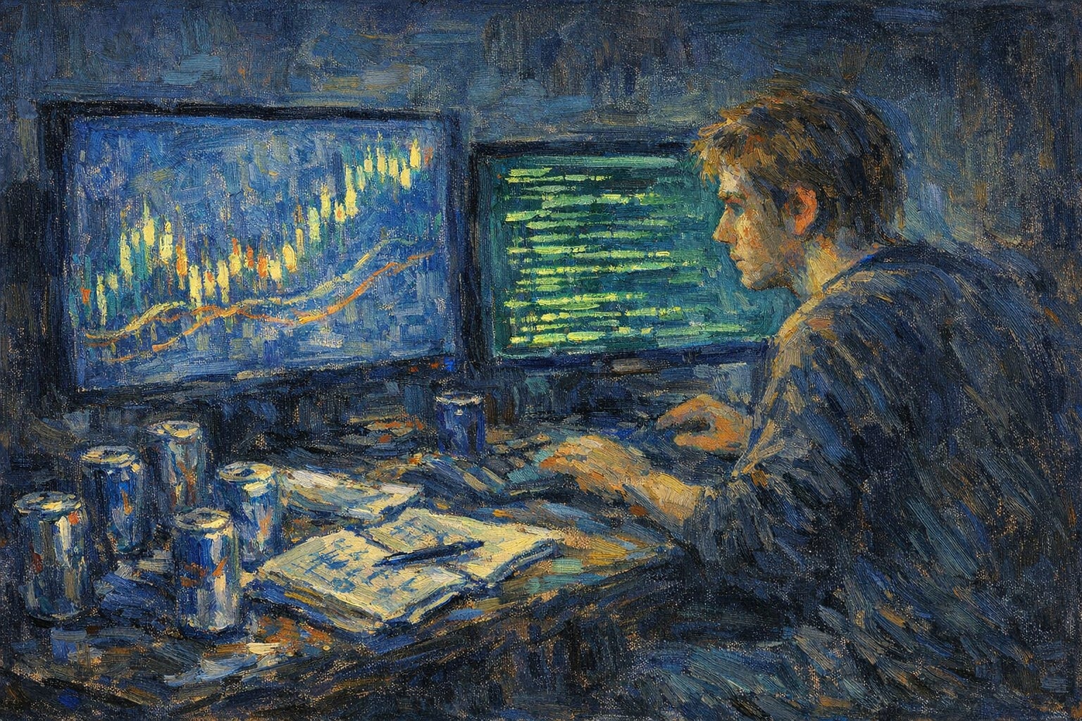Then building Machine Learning algorithms, learning from historical data, identifying patterns and adapting in real time, changing model weights constantly, adding new features to try to find an edge.
