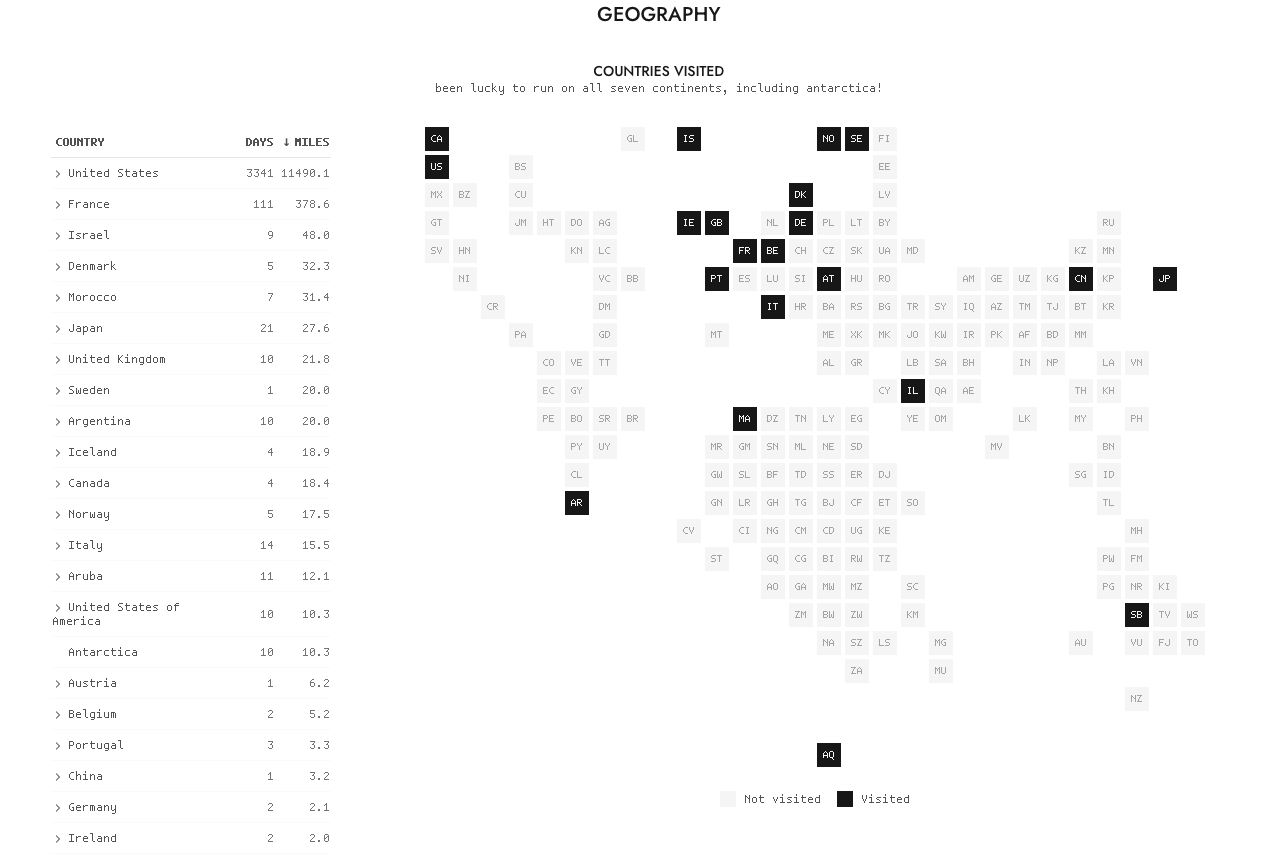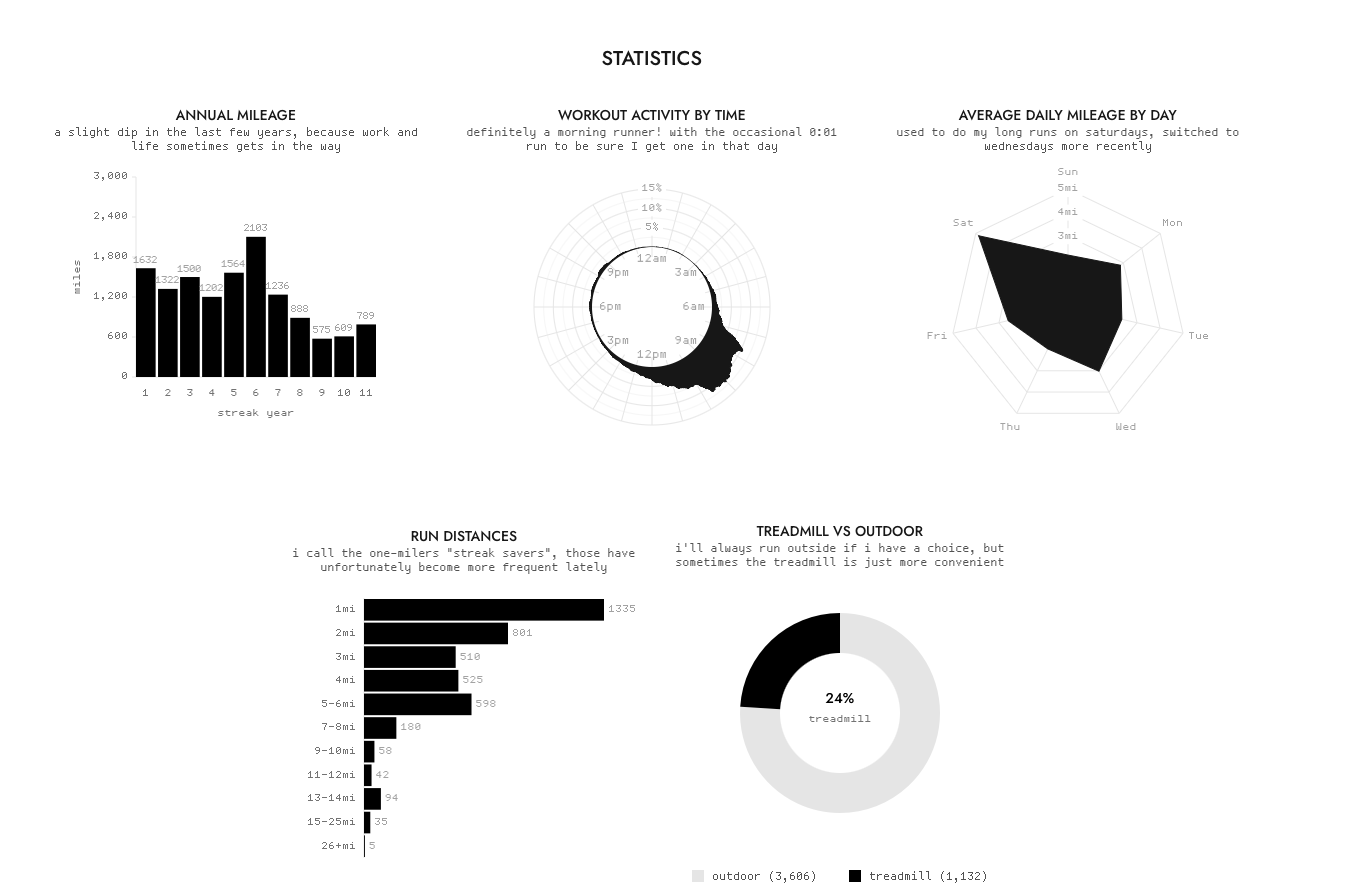 It automatically collects all his data from Strava (I don’t think they have a public API, so I don’t know how he manages all of this, but this is very insightful and motivating).