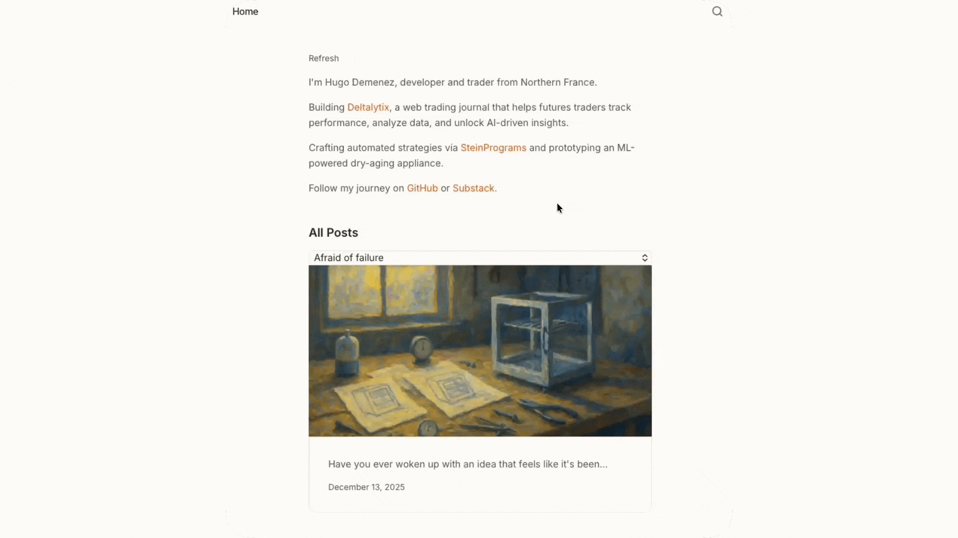 During builds, it fetches every post from Substack using into.md by Timo Lins.